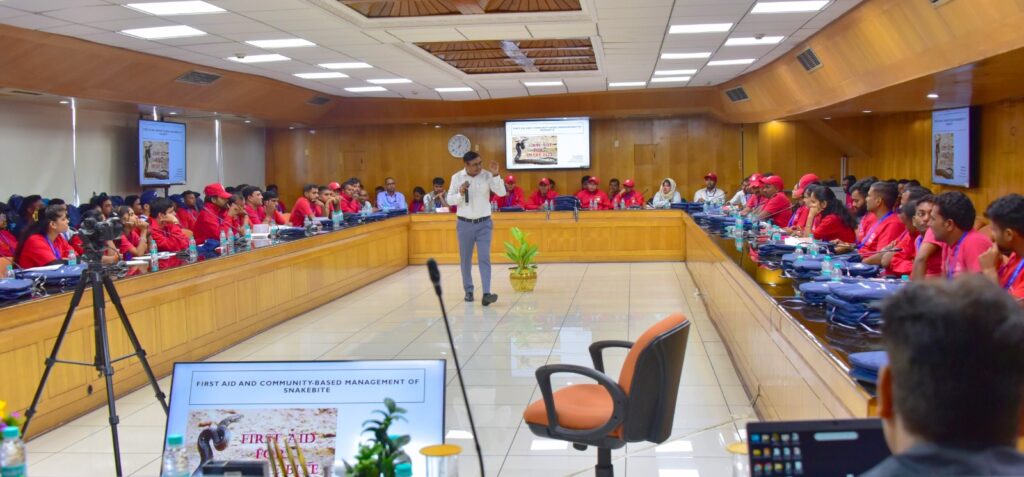 लखनऊ, 15 अक्टूबर 2025। राहत आयुक्त कार्यालय द्वारा बुधवार को योजना भवन के वैचारिकी सभागार में सर्पदंश न्यूनीकरण कार्यक्रम के तहत युवा आपदा मित्रों के लिए नाॅन-क्लीनिकल कार्यशाला का आयोजन किया गया। कार्यक्रम में 25 जनपदों के 100 युवा आपदा मित्रों को सर्पदंश से बचाव, प्राथमिक उपचार और पीड़ित को समय पर अस्पताल पहुंचाने के विषय में प्रशिक्षण दिया गया।