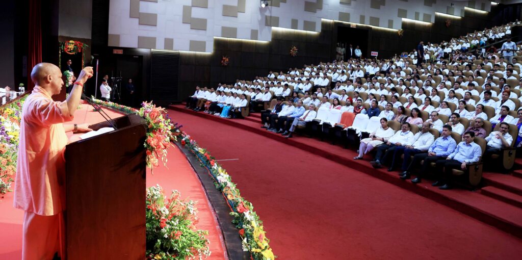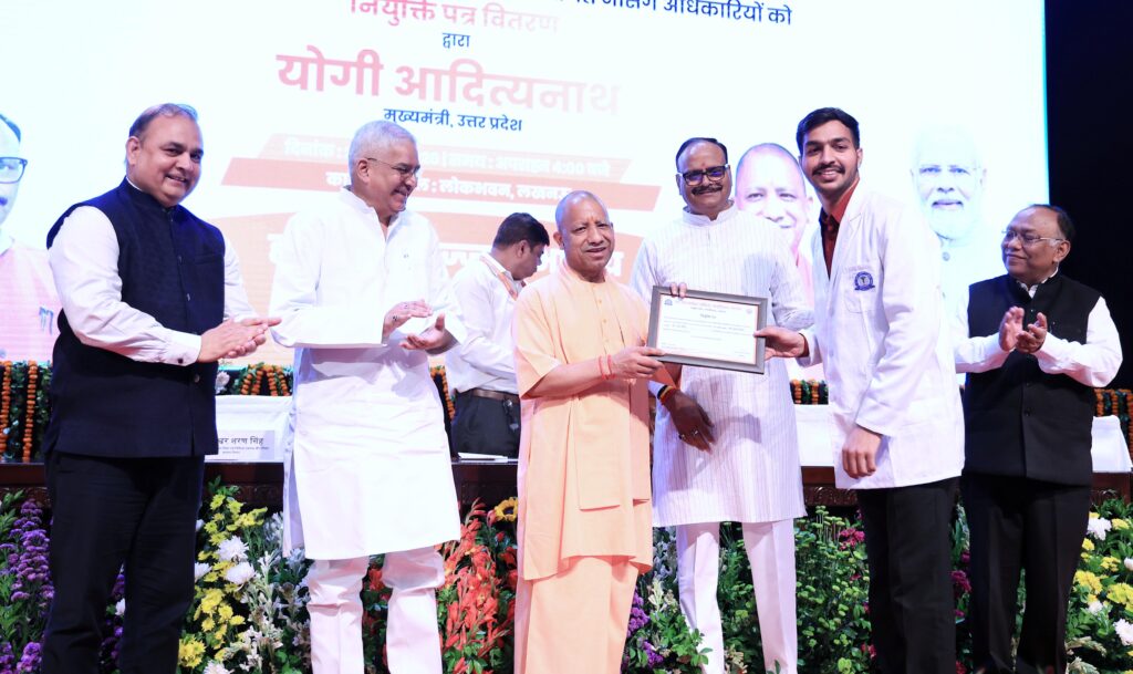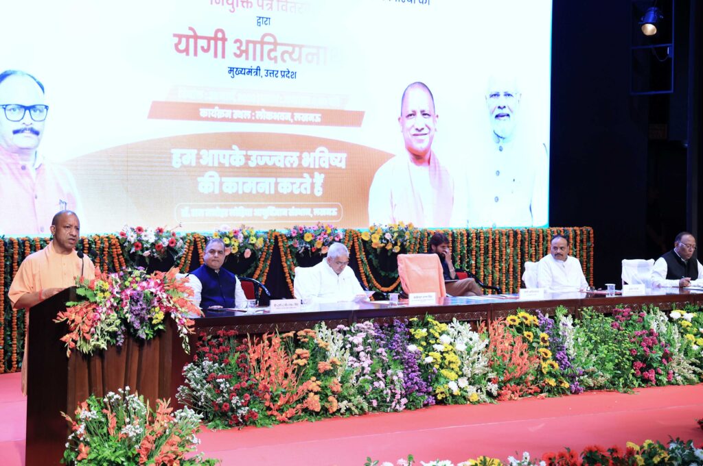 मुख्यमंत्री आज यहाँ लोक भवन में डॉ0 राम मनोहर लोहिया आयुर्विज्ञान संस्थान के नवचयनित 665 नर्सिंग अधिकारियों को नियुक्ति पत्र वितरण कार्यक्रम में नवचयनित नर्सिंग अधिकारियों को नियुक्ति पत्र वितरित करने के उपरान्त अपने विचार व्यक्त कर रहे थे।