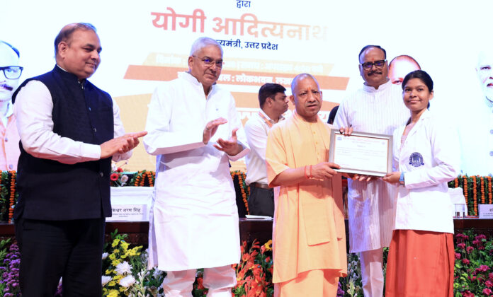 मुख्यमंत्री आज यहाँ लोक भवन में डॉ0 राम मनोहर लोहिया आयुर्विज्ञान संस्थान के नवचयनित 665 नर्सिंग अधिकारियों को नियुक्ति पत्र वितरण कार्यक्रम में नवचयनित नर्सिंग अधिकारियों को नियुक्ति पत्र वितरित करने के उपरान्त अपने विचार व्यक्त कर रहे थे।