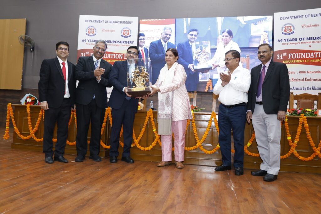 किंग जॉर्ज मेडिकल यूनिवर्सिटी (KGMU), लखनऊ के न्यूरोसर्जरी विभाग ने अपने 31वें स्थापना दिवस का भव्य आयोजन किया। इस अवसर पर विभाग ने न्यूरोसर्जरी के क्षेत्र में 64 वर्षों की निरंतर उत्कृष्टता, शोध और रोगी सेवा के गौरवशाली सफर का उत्सव मनाया।
