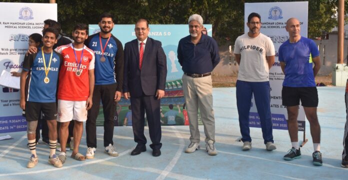 लखनऊ।डॉ. राम मनोहर लोहिया आयुर्विज्ञान संस्थान में एवेन्सिस ५.० के अंतर्गत रविवार, १४ दिसंबर को मिनी स्टेडियम में फैकल्टी स्पोर्ट्स डे एवं पुरस्कार वितरण समारोह का भव्य आयोजन किया गया। इस अवसर पर संस्थान के निदेशक डॉ. सी. एम. सिंह मुख्य अतिथि के रूप में उपस्थित रहे।कार्यक्रम को संबोधित करते हुए डॉ. सी. एम. सिंह ने अपने प्रेरणादायक उद्बोधन में कहा कि स्वस्थ जीवनशैली के लिए खेल अत्यंत आवश्यक हैं। उन्होंने नियमित शारीरिक गतिविधि को तनावमुक्त, सक्रिय और संतुलित जीवन का आधार बताया तथा सभी को खेलों को दैनिक जीवन का हिस्सा बनाने के लिए प्रेरित किया। कार्यक्रम के दौरान विभिन्न विभागों के फैकल्टी सदस्यों ने छात्रों के साथ मिलकर कई खेल प्रतियोगिताओं में उत्साहपूर्वक भाग लिया। पूरे आयोजन में खेल भावना, आपसी सौहार्द और ऊर्जा का अद्भुत वातावरण देखने को मिला। फैकल्टी और छात्रों ने साथ-साथ खेलों का आनंद लेते हुए एवेन्सिस ५.० के इस विशेष आयोजन को यादगार बना दिया।