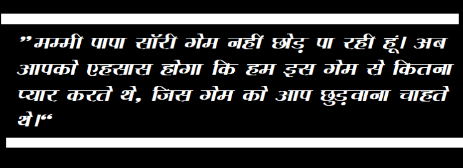 “मम्मी पापा सॉरी… गेम नहीं छोड़ पा रही हूं। अब आपको एहसास होगा कि हम इस गेम से कितना प्यार करते थे, जिस गेम को आप छुड़वाना चाहते थे।”