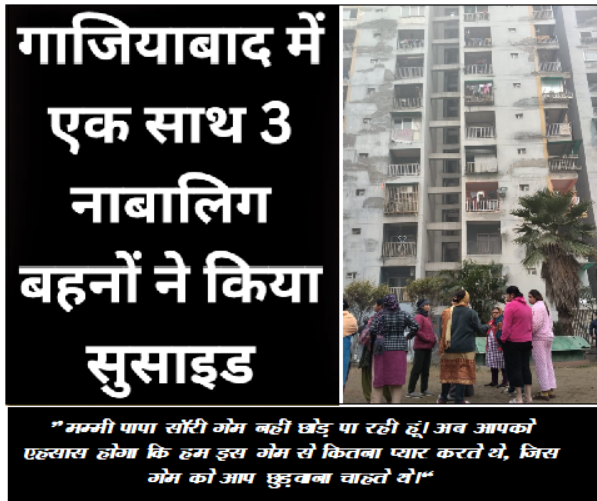गाजियाबाद के भारत सिटी बी-1 टावर के फ्लैट नंबर 907 में मंगलवार रात करीब 2 बजे एक हृदयविदारक हादसा हो गया। 12, 14 और 16 वर्ष की तीन सगी बहनों ने हाथ पकड़कर बालकनी से छलांग लगा दी। गिरने की तेज़ आवाज सुनकर कॉलोनी के लोग मौके पर पहुंचे और तुरंत पुलिस को सूचना दी।