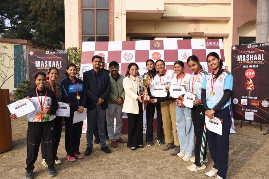मशाल 6.0 – ऊर्जन करें · प्रभाव डालें · प्रेरित करें के माध्यम से, जयपुरिया इंस्टीट्यूट ऑफ मैनेजमेंट, लखनऊ ने कक्षा से परे टीमवर्क, अनुशासन, नेतृत्व और सशक्त खेल भावना को प्रोत्साहित करते हुए समग्र छात्र विकास के प्रति अपनी प्रतिबद्धता को पुनः सुदृढ़ किया।