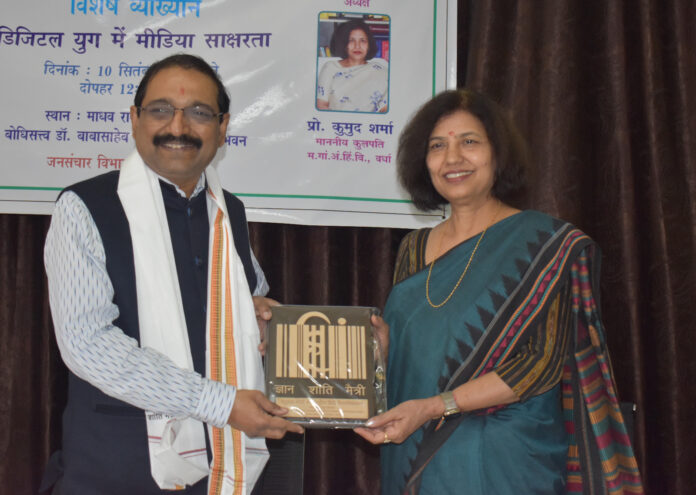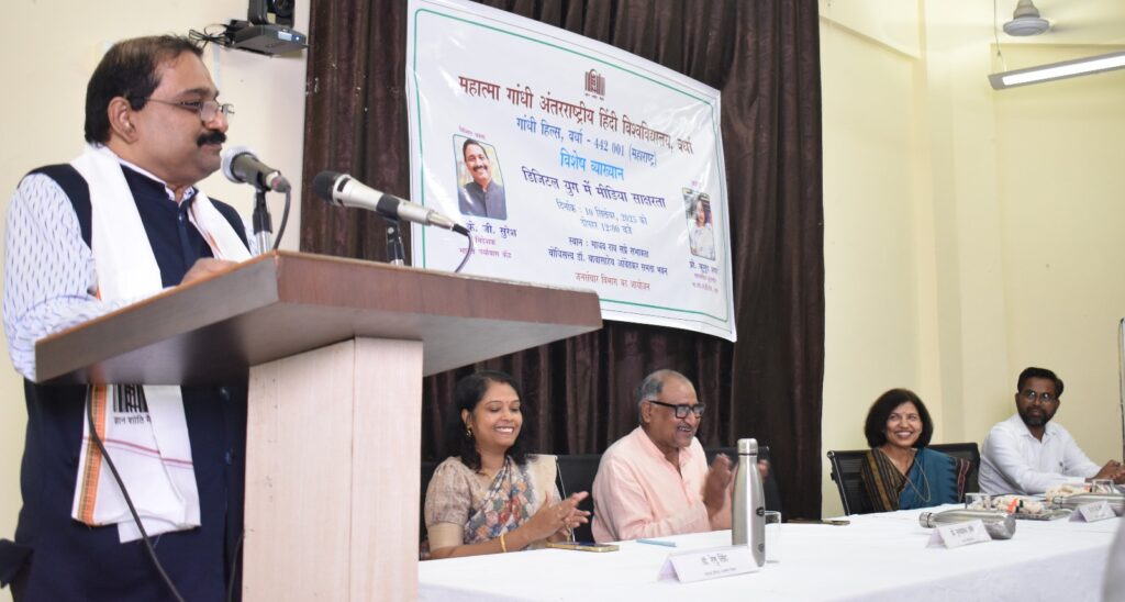 वर्धा, 10 सितंबर 2025 : भारत पर्यावास केंद्र, नई दिल्ली के निदेशक प्रो. के. जी. सुरेश ने कहा है कि डिजिटल युग में मीडिया साक्षरता आवश्यक है। वे बुधवार, 10 सितंबर को महात्मा गांधी अंतरराष्ट्रीय हिंदी विश्वविद्यालय के जनसंचार विभाग के माधवराव सप्रे सभा कक्ष में डिजिटल युग में मीडिया साक्षरता विषय पर विशेष व्याख्यान दे रहे थे। प्रो. के. जी. सुरेश ने कहा कि नेपाल, बांग्लादेश समेत विभिन्न देशों में सोशल मीडिया को लेकर जो हिंसा देखी जाती है, वैसा कभी लोकतांत्रिक देश भारत में नहीं देखा गया। उन्होंने कहा कि लोकतांत्रिक मूल्य भारत में जन जन तक पहुंचा है। पत्रकारिता और साहित्य में पहले बहुत निकटता थी, वह कड़ी आज कमजोर हो रही है। पत्रकारों को भाषा और विश्व की परिस्थिति की समझ होनी चाहिए। उन्होंने कहा कि सोशल मीडिया कोई आंदोलन खड़ा नहीं कर सकता। आंदोलन जनता से बीच से ही निकलता है। नागरिक पत्रकारिता का जिक्र करते हुए उन्होंने कहा कि नागरिक संवाहक बन सकता है, पत्रकार नहीं। उन्होंने मीडिया में आए बदलाव, असत्य समाचार, डीप फेक जैसी तकनीक का उल्लेख करते हुए कहा कि एैसे समय में मीडिया साक्षरता जरूरी है और इसे विद्यालय एवं विश्वविद्यालयों के पाठ्यक्रमों में शामिल किया जाना चाहिए, जिससे सही गलत की पहचान हो सके और समाज में जागरूकता बढ़ सके। इसके लिए राष्ट्रीय मीडिया साक्षरता बोर्ड जैसी एजन्सी बनाए जाने की आवश्यकता पर उन्होंने बल दिया।
