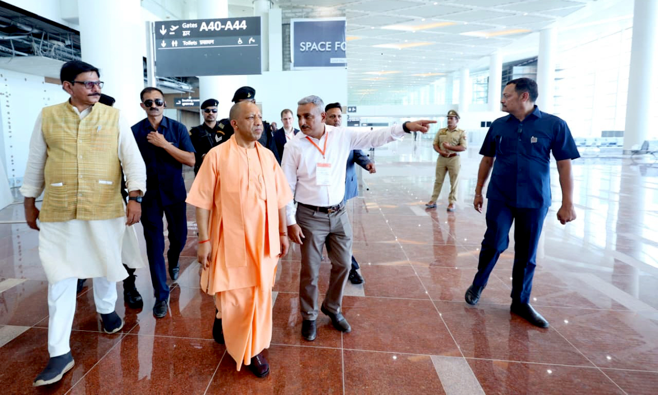 उत्तर प्रदेश के मुख्यमंत्री योगी आदित्यनाथ ने आज जनपद गौतमबुद्धनगर में नोएडा इण्टरनेशनल एयरपोर्ट, जेवर का स्थलीय निरीक्षण किया। निरीक्षण के दौरान मुख्यमंत्री जी ने डोमेस्टिक टर्मिनल, एयरपोर्ट उद्घाटन समारोह स्थल, सुरक्षा प्रबन्धन, यातायात व्यवस्था तथा अन्य निर्माण कार्यों की प्रगति का भी अवलोकन किया।
