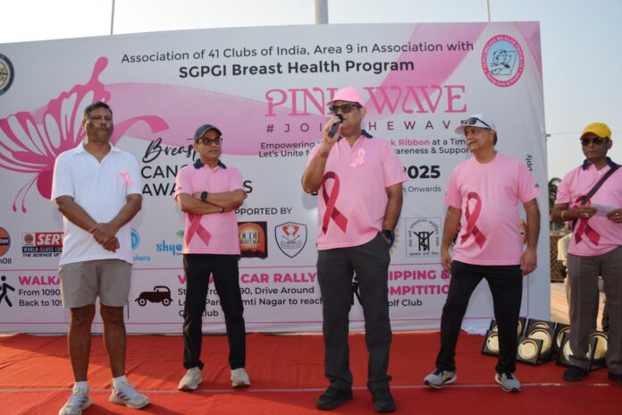 लखनऊ। एसोसिएशन ऑफ ४१ क्लब ऑफ इंडिया एरिया-९ ने ५ अक्टूबर को एसजीपीजीआई ब्रेस्ट हेल्थ प्रोग्राम के सहयोग से ‘पिंक वेव’ का आयोजन किया। इस कार्यक्रम का उद्देश्य स्तन कैंसर के प्रति जागरूकता फैलाना और यह बताना था कि समय पर जांच और इलाज से इस बीमारी से जीवन बचाया जा सकता है।इस आयोजन में लखनऊ गोल्फ क्लब, इनर व्हील और कई अन्य संस्थाएँ शामिल हुईं। कार्यक्रम का प्रायोजन इंडियन ऑयल और ज्ञान दूध ने किया।