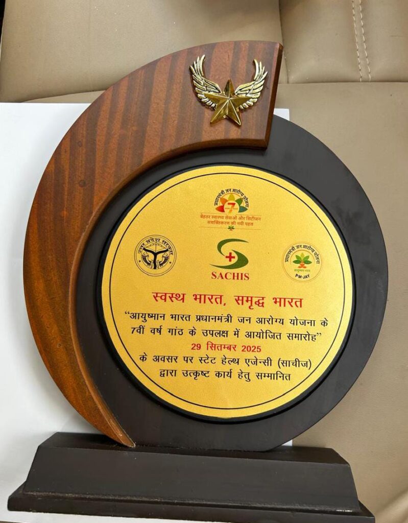 यह पुरस्कार उत्तर प्रदेश के उप मुख्यमंत्री एवं चिकित्सा, स्वास्थ्य व परिवार कल्याण मंत्री श्री ब्रजेश पाठक द्वारा अटल बिहारी वाजपेयी वैज्ञानिक सम्मेलन केंद्र, लखनऊ में आयोजित आयुष्मान संवाद के दौरान प्रदान किया गया। यह कार्यक्रम उत्तर प्रदेश में एबी-पीएमजेएवाई के सात वर्ष पूरे होने के उपलक्ष्य में उत्तर प्रदेश स्वास्थ्य एवं एकीकृत सेवा एजेंसी (साचीस) द्वारा आयोजित किया गया।