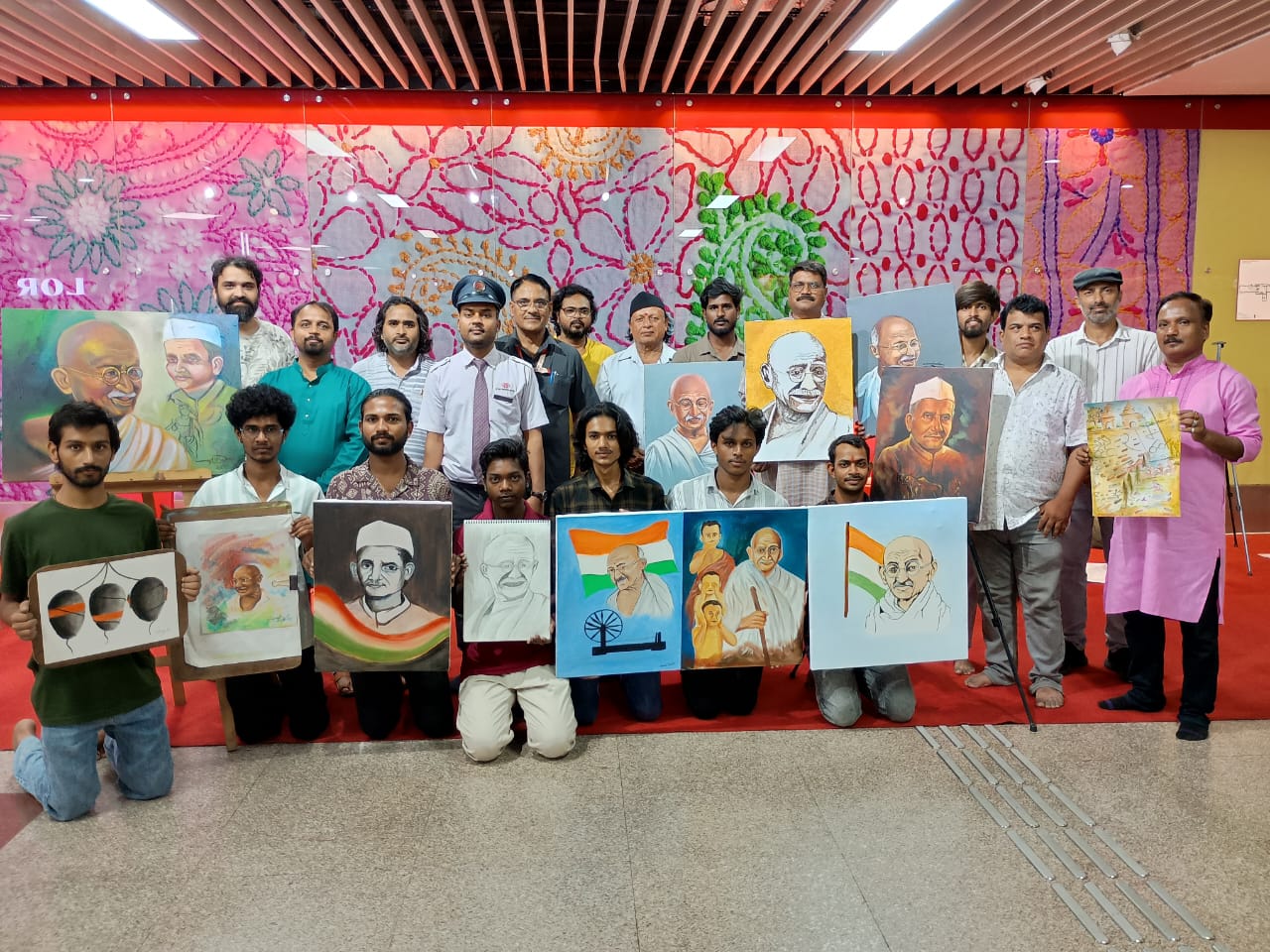 कार्यशाला में अश्वनी कुमार प्रजापति, मोहन मावा, नीरज बिंद, युवराज, आशीष कश्यप, सुमित, सौरभ मौर्या, कुलदीप, अभिनय सिंह, रितेश कपूर, कुंवर जी वर्मा, शेफाली सोनी, ज्ञानेंद्र कुमार, अमित कुमार, राजीव कुमार रावत, अंकित निषाद और कला समीक्षक भूपेंद्र कुमार अस्थाना समेत कई युवा कलाकारों ने भाग लिया।ळझ् मेट्रो के प्रबंध निदेशक सुशील कुमार ने कहा कि हजरतगंज मेट्रो स्टेशन परिसर में गांधी और शास्त्री जी के चित्र बनाना यात्रियों और नागरिकों के लिए एक अनूठा अनुभव रहा। यह आयोजन कला के माध्यम से देश के इन महान नेताओं को श्रद्धांजलि देने का प्रयास है।आयोजन के संयोजक चित्रकार अश्वनी कुमार प्रजापति ने बताया कि वे और उनके साथी कलाकार समाज में कला के प्रति जागरूकता फैलाने के लिए गांधी जयंती, लता मंगेशकर और अटल बिहारी वाजपेयी की स्मृति में भी इस तरह के आयोजन लगातार करते रहे हैं।