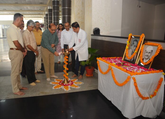 कार्यक्रम की शुरुआत प्रातः 11 बजे दीप प्रज्वलन और महात्मा गांधी व लाल बहादुर शास्त्री के चित्रों पर पुष्प अर्पित कर हुई। इस अवसर पर एसजीपीजीआईएमएस के निदेशक प्रो. आर. के. धीमन, संयुक्त निदेशक (सामग्री प्रबंधन) श्री प्रकाश सिंह, संयुक्त निदेशक प्रशासन कर्नल जयदीप सिंह घुमन और चिकित्सा अधीक्षक प्रो. आर. हर्षवर्धन सहित बड़ी संख्या में फैकल्टी सदस्य, रेजिडेंट डॉक्टर, कर्मचारी और छात्र-छात्राएं मौजूद रहे।